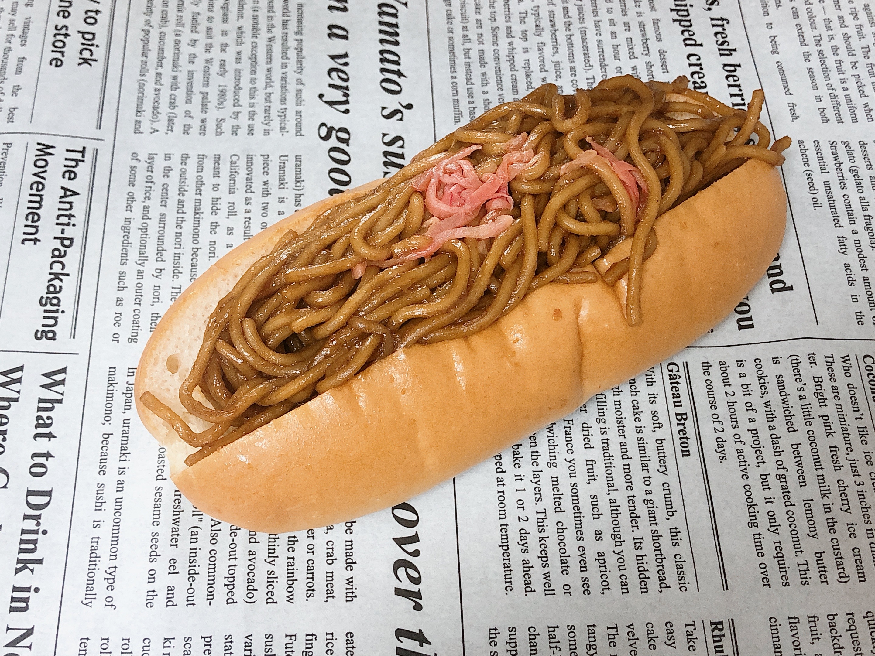ソース焼きそばをたっぷりサンドしました。マヨネーズ風味でまろやかな風味に。